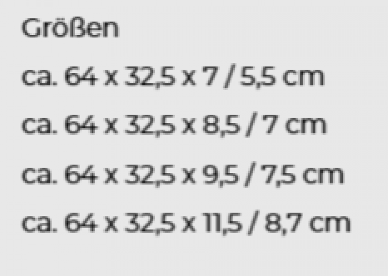soft oder medium. Kerngröße ca. 64 x 32,5 cm.