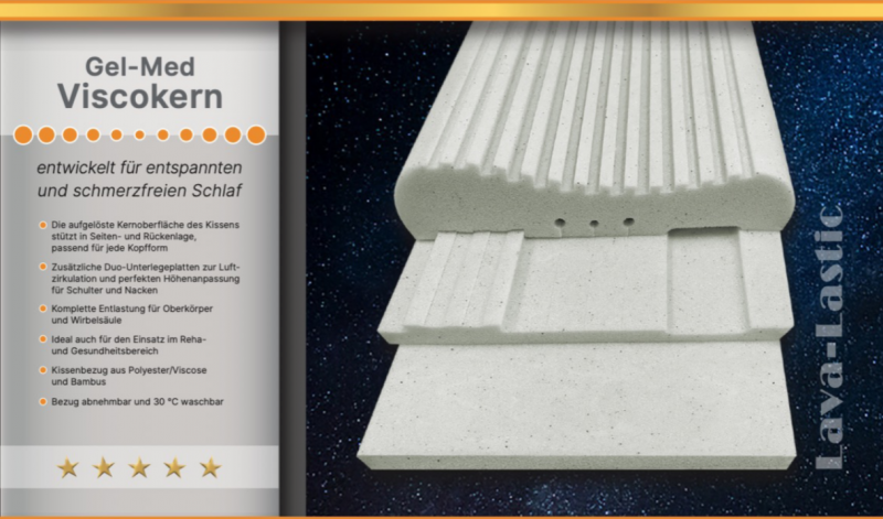Mit LavaLastic immer in der passenden Höhe schlafen. 3 Höhen 12,5 cm 10,5 cm oder 8,5 cm durch 2 Gel-Visco-Kerneinlegplatten.